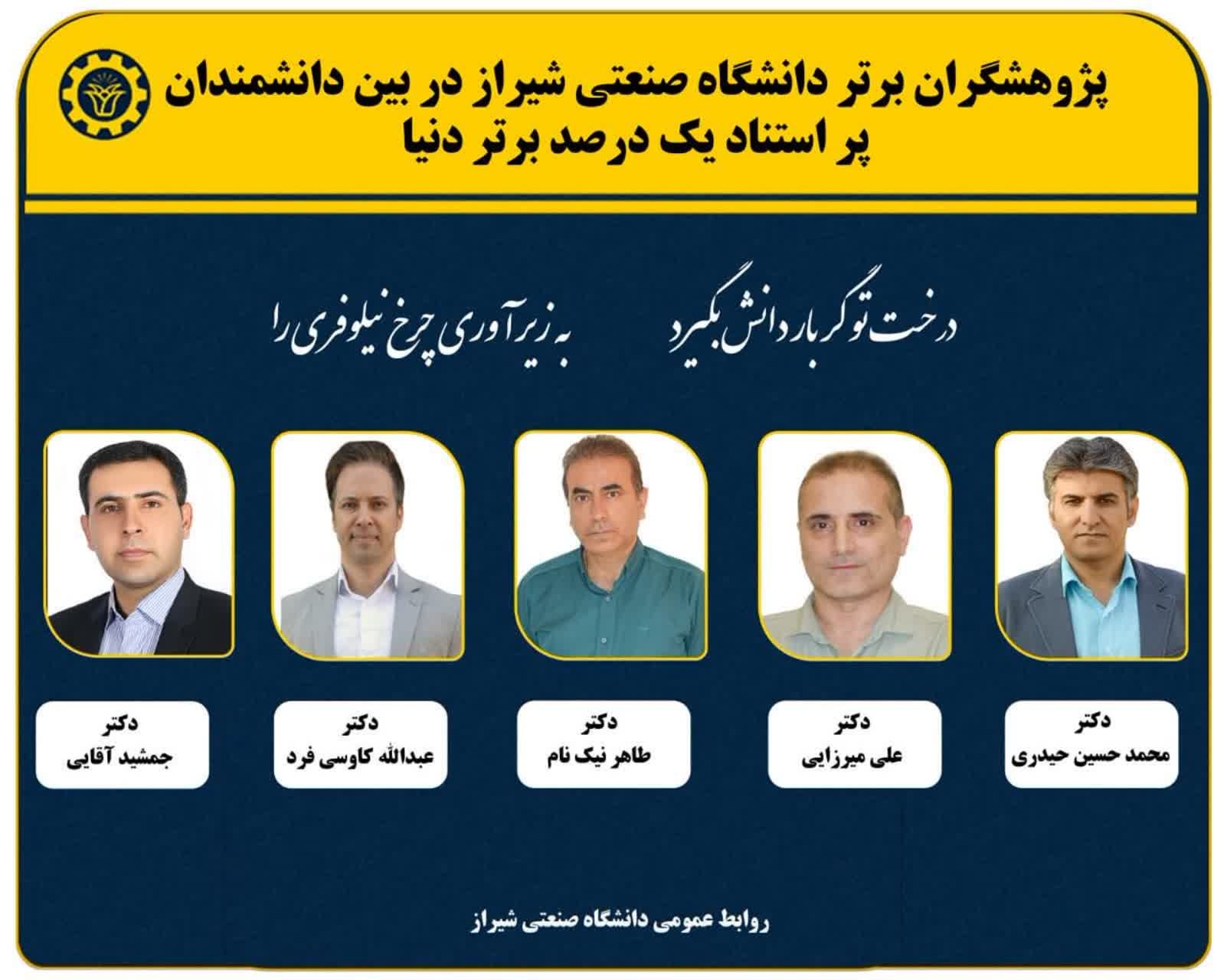 ۵ عضو هیات علمی دانشگاه صنعتی شیراز در زمره پژوهشگران پراستناد یک درصد برتر جهان