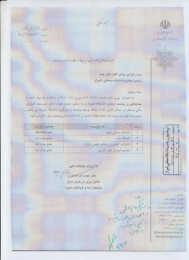 صورتجلسه ششمین نشست از دوره سوم هیئت امنای دانشگاه صنعتی شیراز مورخ 1403/05/21